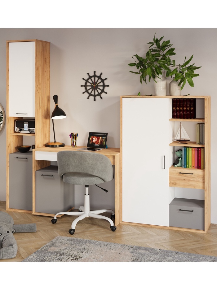 Шкаф – пенал двухдверный «Трио», 400×354×2020 мм, цвет дуб крафт/шифер/белый