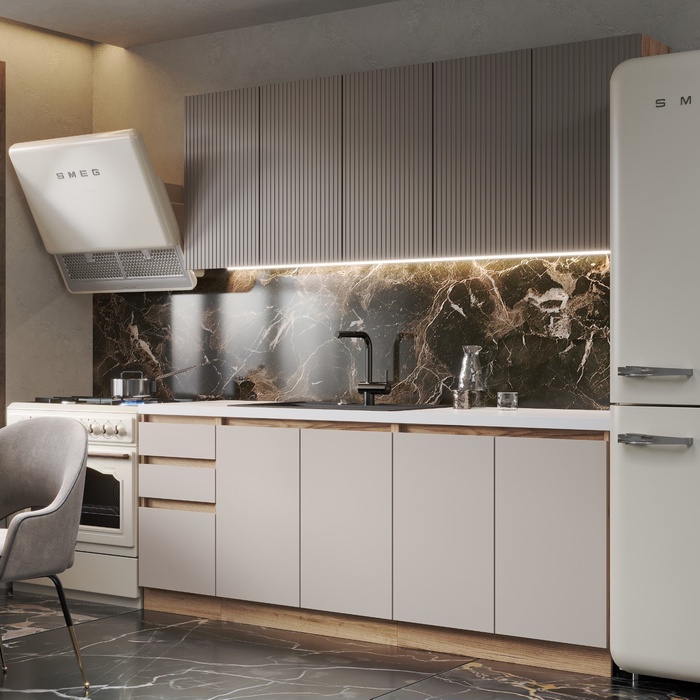 - Современный дизайн: фасад из МДФ в современных оттенках придает шкафу стильный и элегантный вид, идеально подходящий для любого кухонного интерьера.