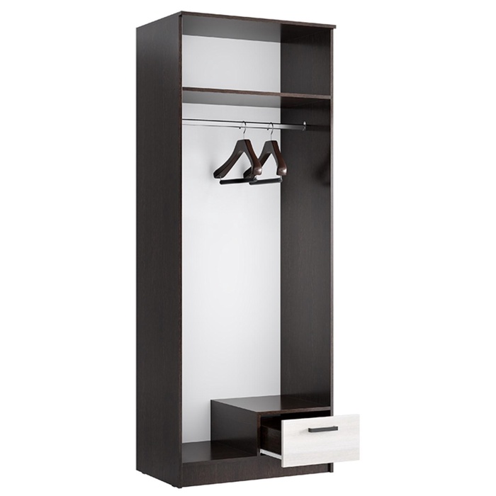 - Оборудован внутренней полкой, штангой и выдвижным ящиком, что обеспечивает удобное место для хранения одежды, обуви и аксессуаров.