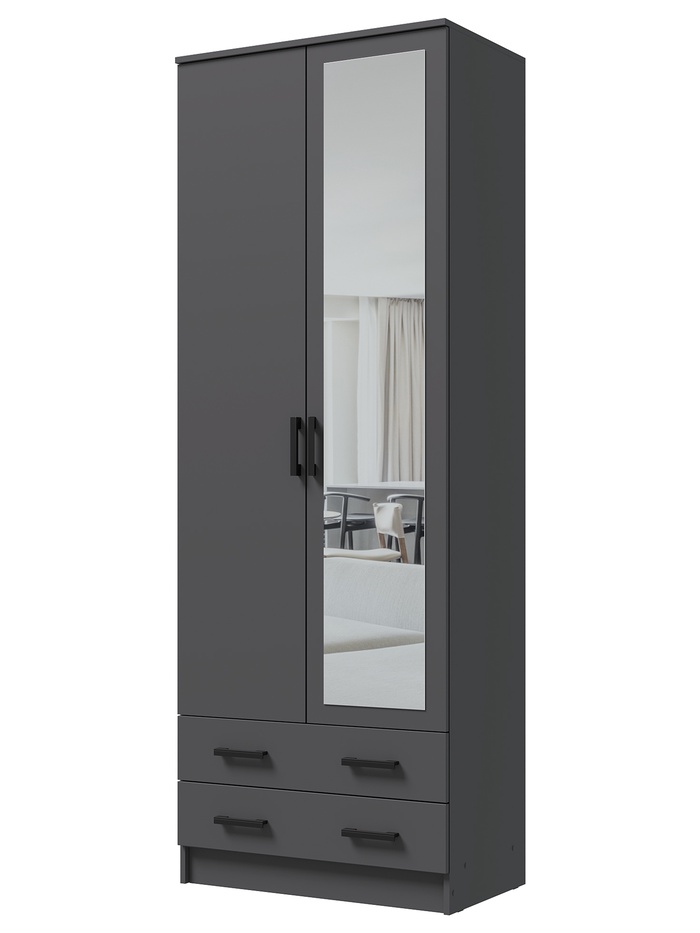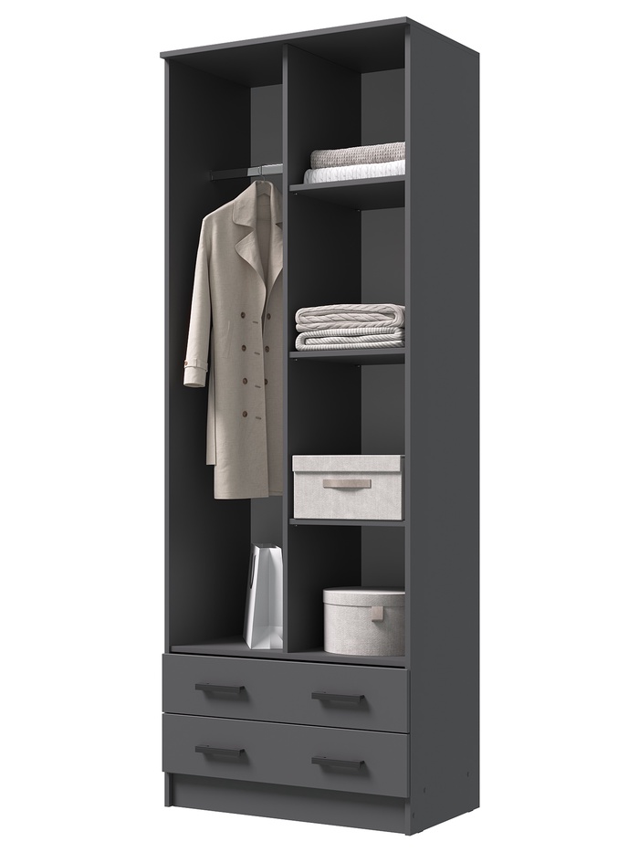 Мебельное изделие для хранения различных предметов или вещей. Чистые линии и лаконичный дизайн делают шкаф универсальным элементом интерьера, подходящим для гостиной, спальни или кабинета. Два вместительных ящика и комбинированная конструкция обеспечивают удобное хранение одежды, документов или других предметов, поддерживая порядок в комнате.