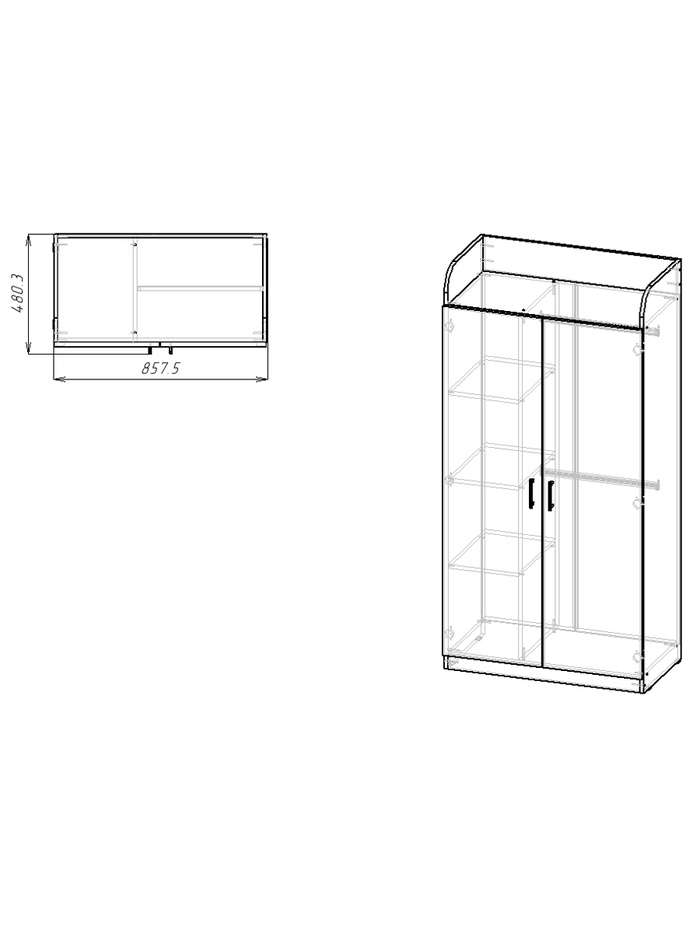 Шкаф распашной двухстворчатый «Клик Мебель. Ушастый», 860×450×1700 мм, цвет белый