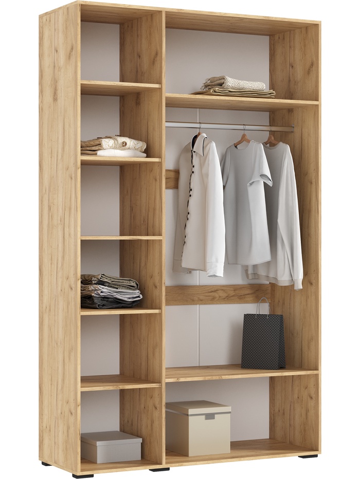 - Просторные полки: обеспечивают удобное хранение одежды, аксессуаров и других предметов.