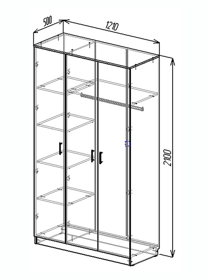 Шкаф распашной 3-х створчатый, 1210х500х2100 - это удобная и вместительная система хранения, включающая полки для белья и штангу для одежды. Данный шкаф оснащён просторными отделениями, которые вместят в себя одежду, постельное бельё, коробки с обувью и многое другое. Шкаф выполнен из прочной ЛДСП с эффектным покрытием и будет отлично смотреться в интерьере любого стиля.