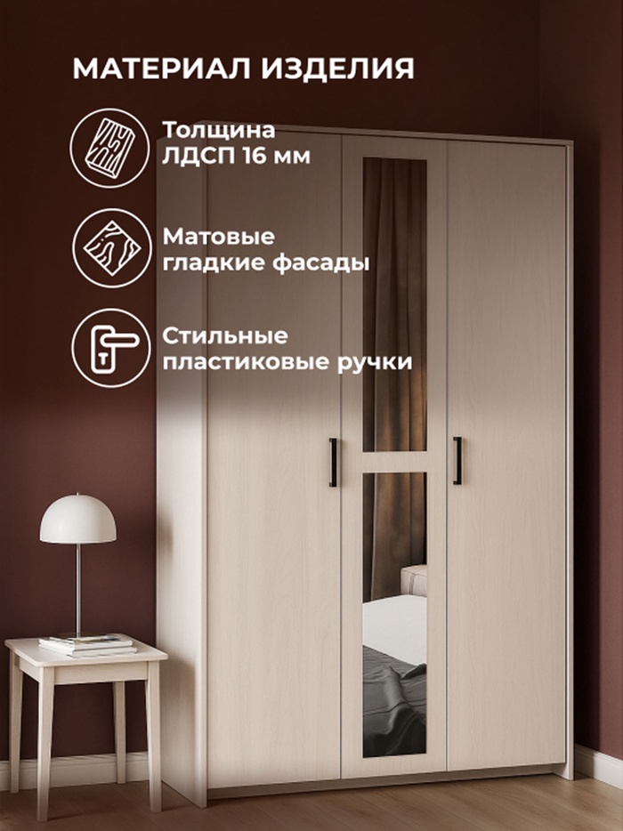 Шкаф трехстворчатый Таика ясень анкор светлый