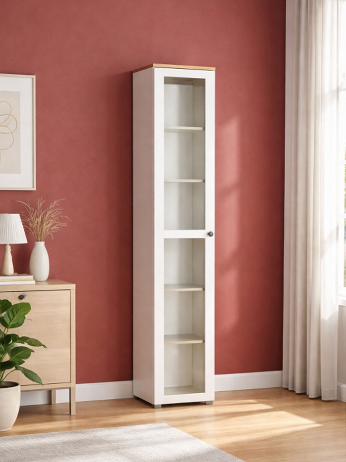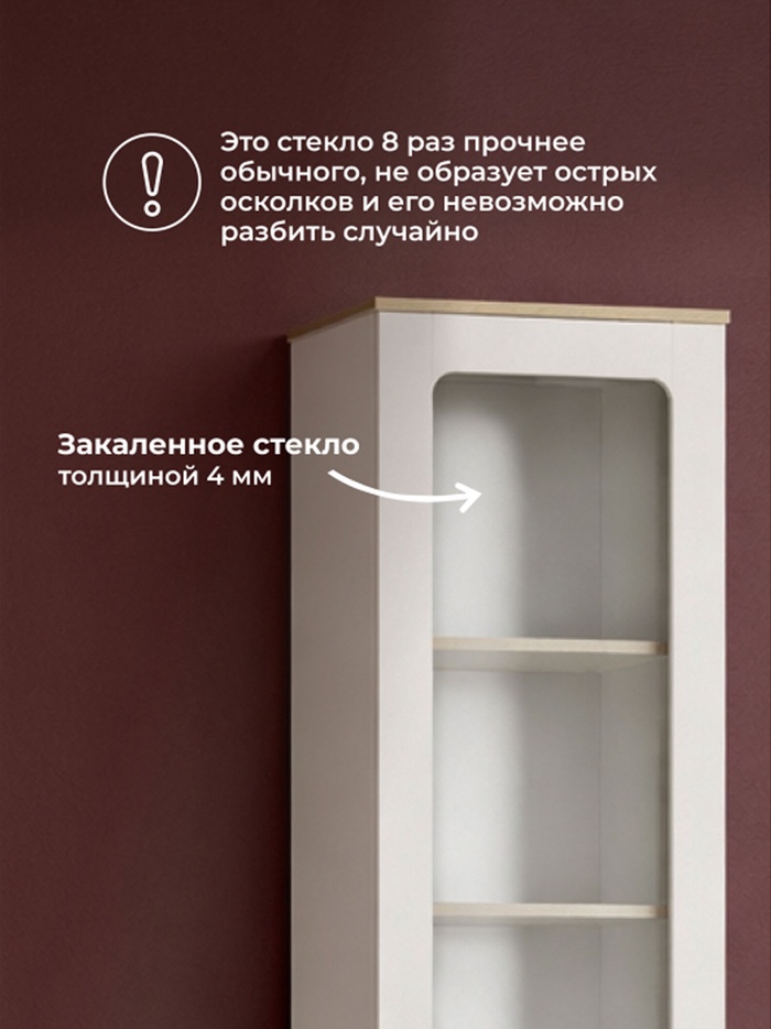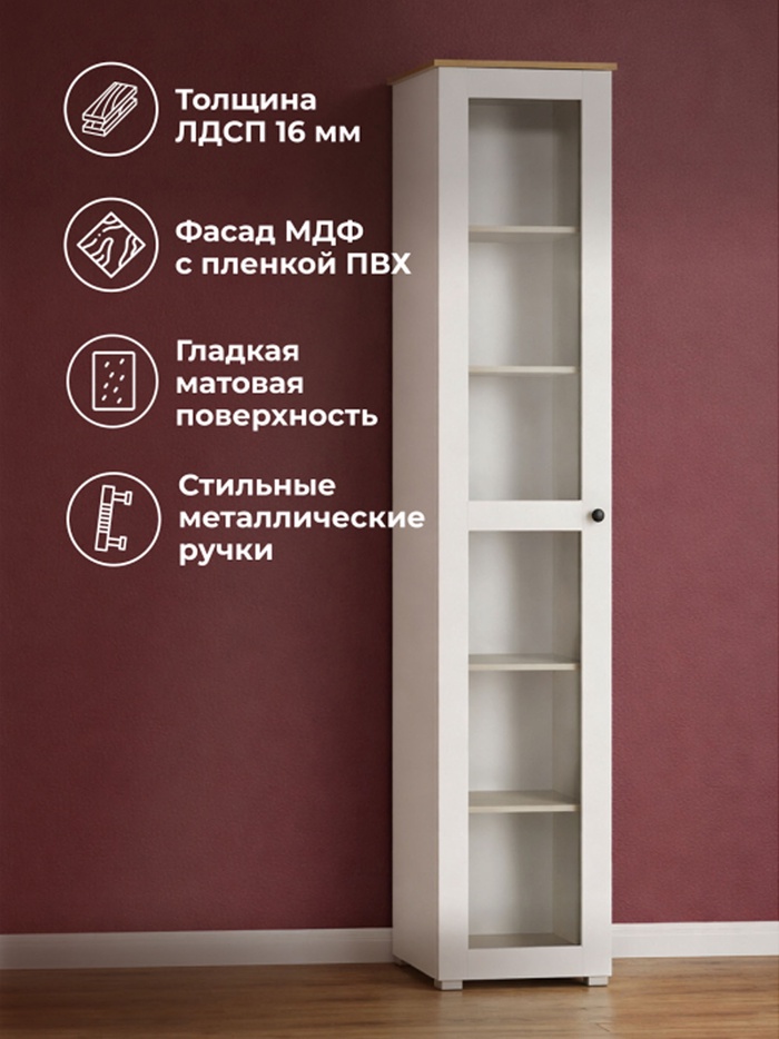 Шкаф - витрина Опра 16.394.03 белый PE шагрень / дуб золотой craft