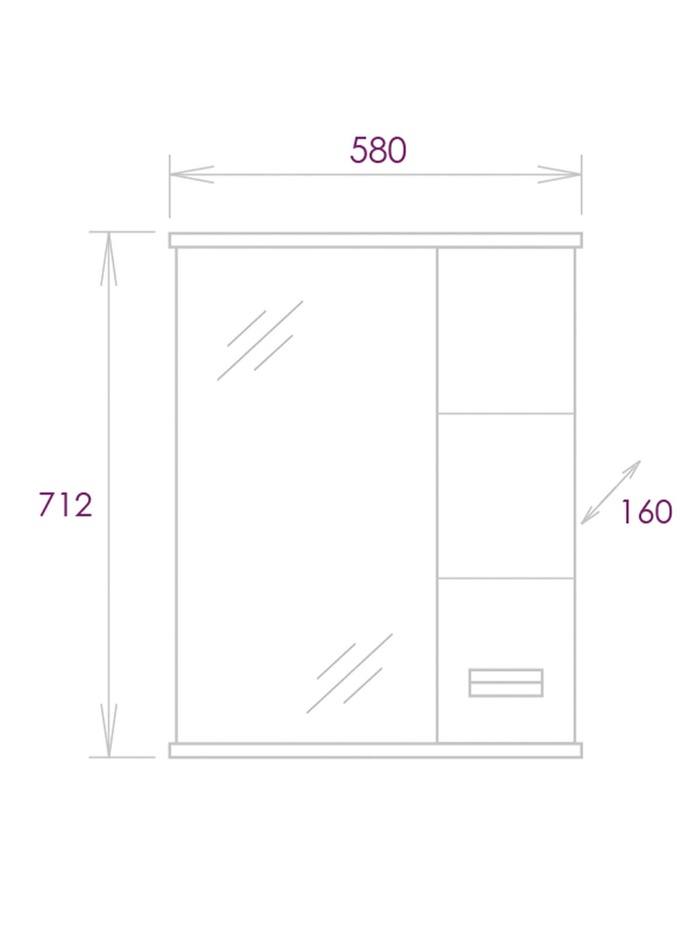 Шкаф-зеркало Onika Балтика Black 58 белый, правый, с подсветкой