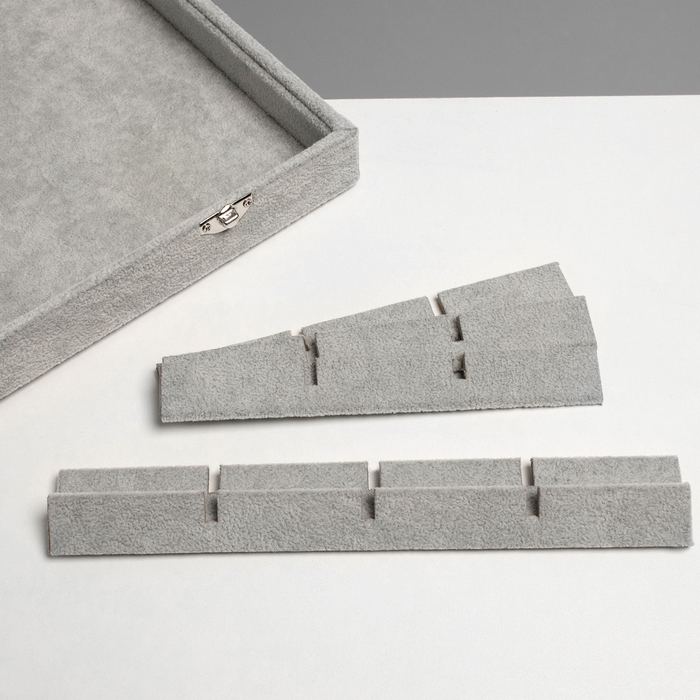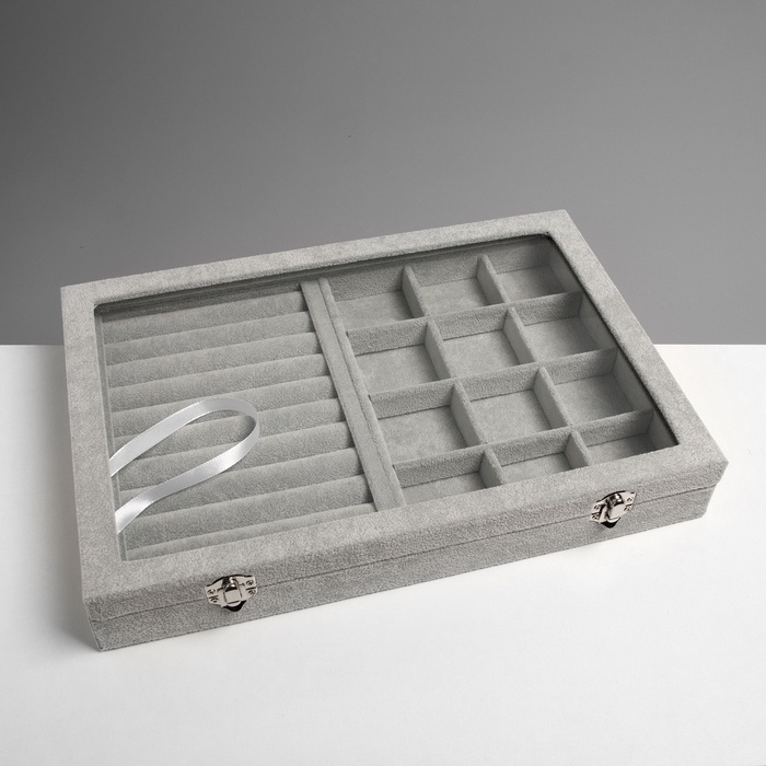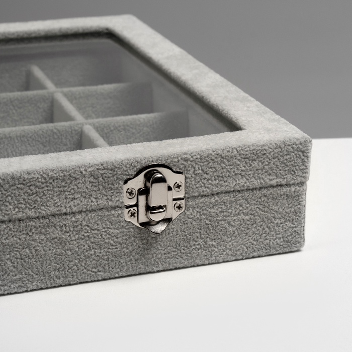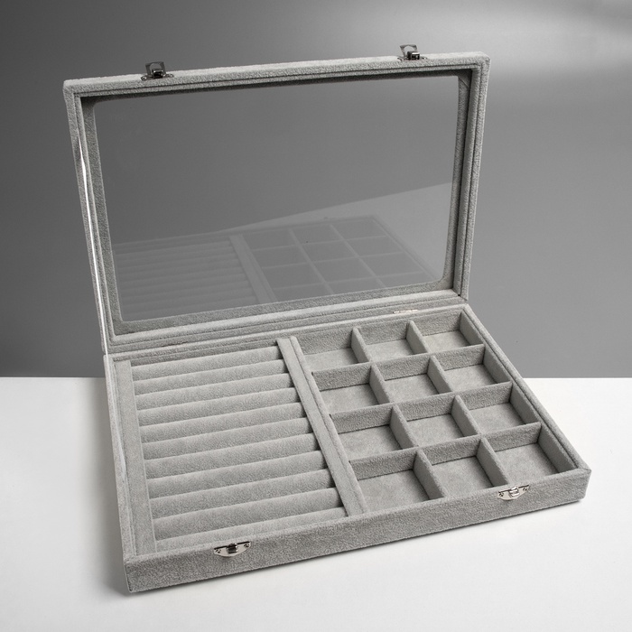 Если вы занимаетесь реализацией разнообразных украшений и аксессуаров, то вам нужно наглядно продемонстрировать свой товар, представив его в лучшем виде. Шкатулка 9 полос, 12 ячеек, 35×24×4.5, стекл крышка, серая как нельзя лучше справится с этой задачей! У каждого украшения появится своё место, откуда его можно будет хорошо рассмотреть.