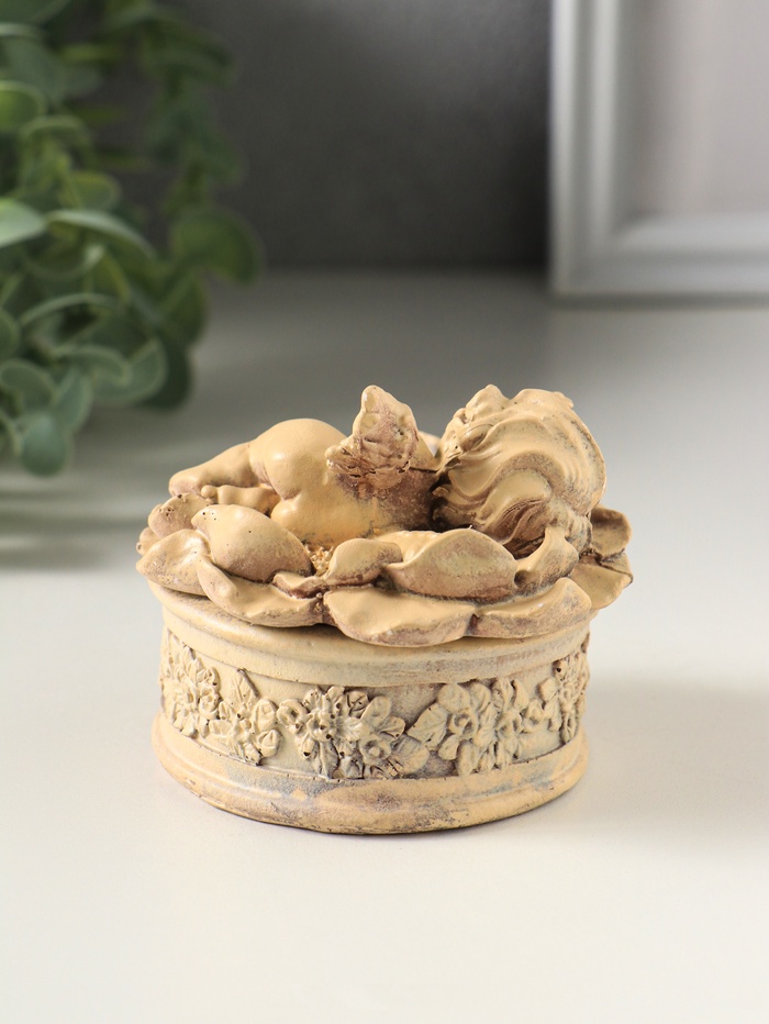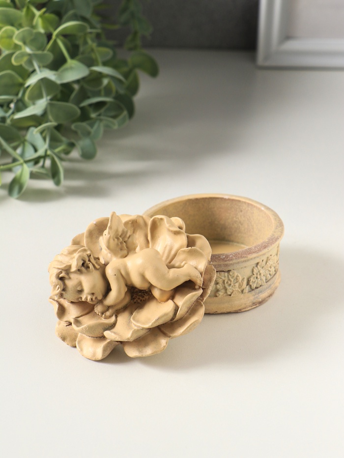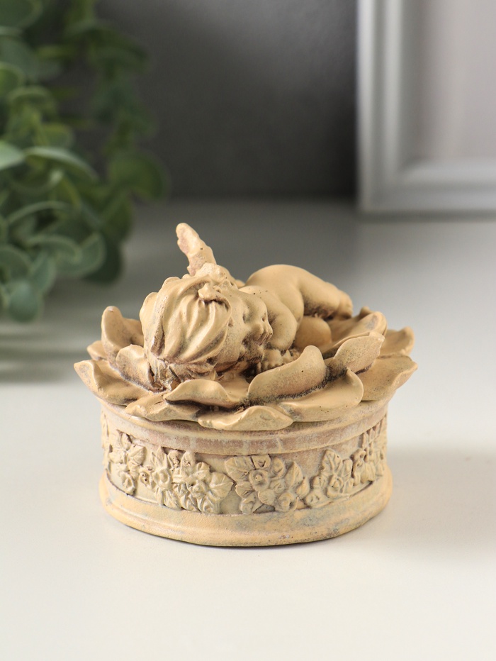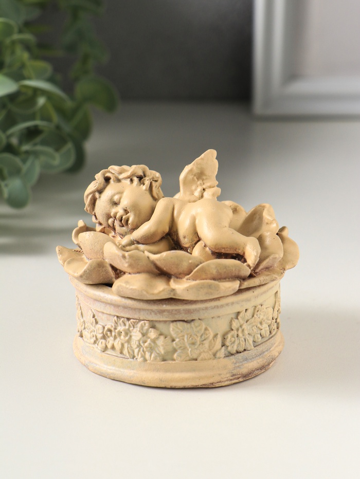 Шкатулка "Ангел в цветке" размер 7х7 см, цвет слоновая кость