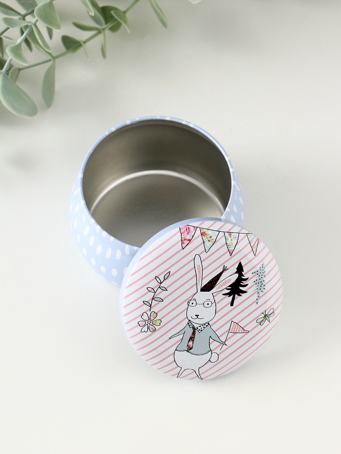 Эта круглая шкатулка с очаровательными кроликами — уютное место для ваших украшений и памятных мелочей. Она превращает хранение в маленький ритуал, напоминая о весеннем настроении и тёплых моментах. Металлический корпус надёжно защищает содержимое, а фигурный рельеф придаёт лёгкости и изящества.