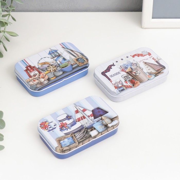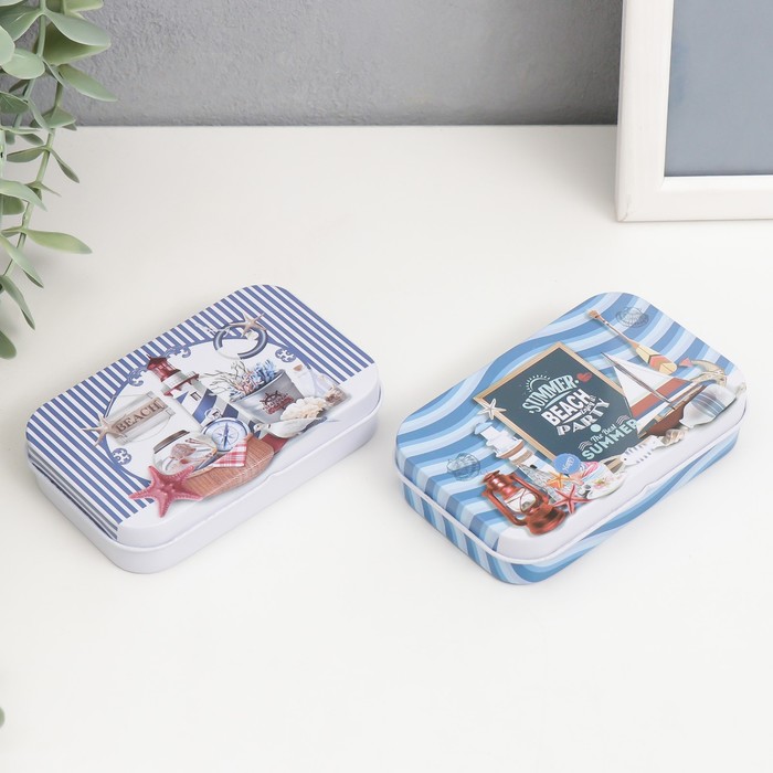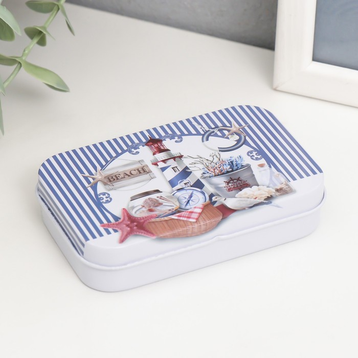 Шкатулка для хранения мелочей, украшений «Прямоугольная. Морская», металл, 5.8×9.5×2.2 см, МИКС