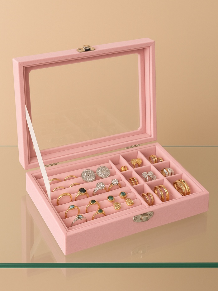 - Нежный розовый цвет: добавляет интерьеру лёгкости и женственности, делая хранение украшений ещё приятнее.
