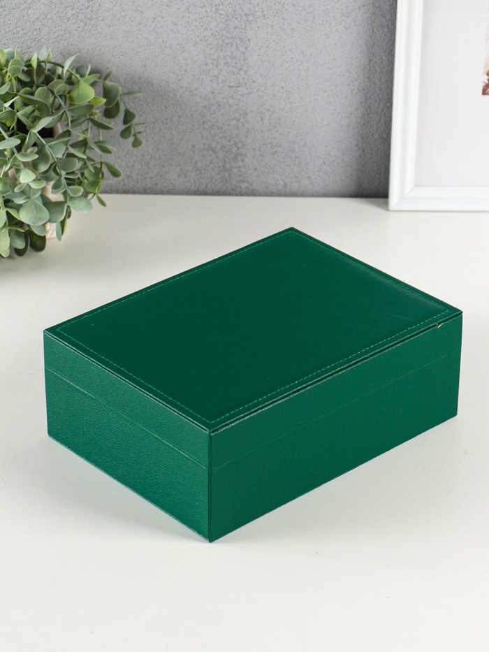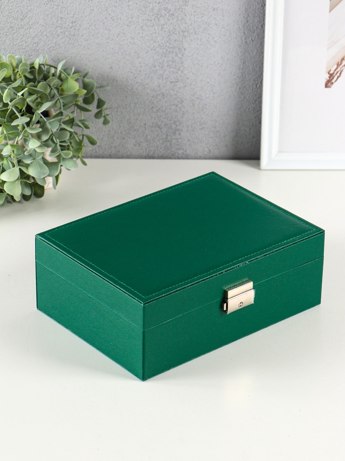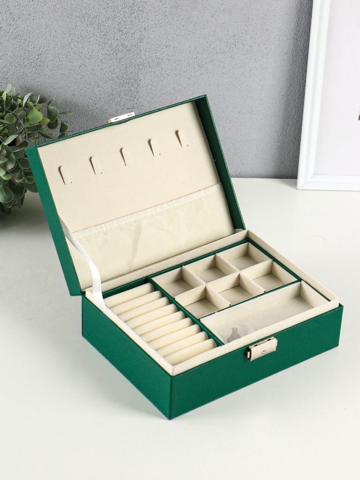 Эта зелёная шкатулка для драгоценностей — надёжный дом для вашей коллекции. В её глубоком отсеке с текстильными отделениями каждая вещь обретает своё место, а съёмная подставка дарит кольцам и серьгам достойное представление. Замок с ключом хранит ваши сокровища и воспоминания, с которыми они связаны.