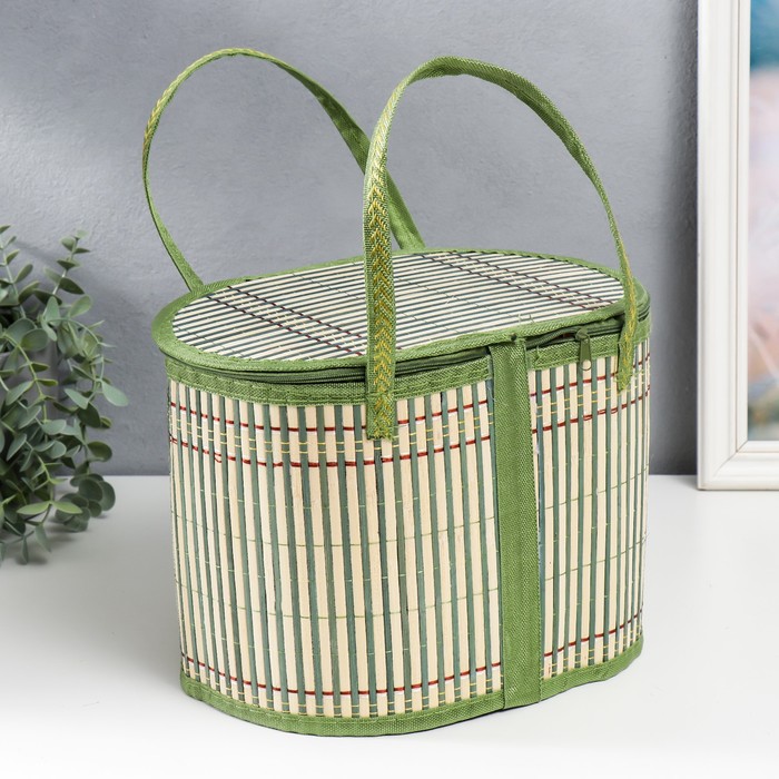 Шкатулка для украшений «Нежно-зелёная», с ручками на молнии, бамбук, 21×20×30 см