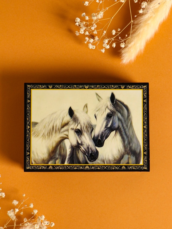 Шкатулка для драгоценных моментов жизни. Лаковая шкатулка «Белые лошади» — это произведение искусства, созданное для хранения ваших украшений. Элегантная миниатюра с изображением грациозных животных превращает обычный аксессуар в объект восхищения.