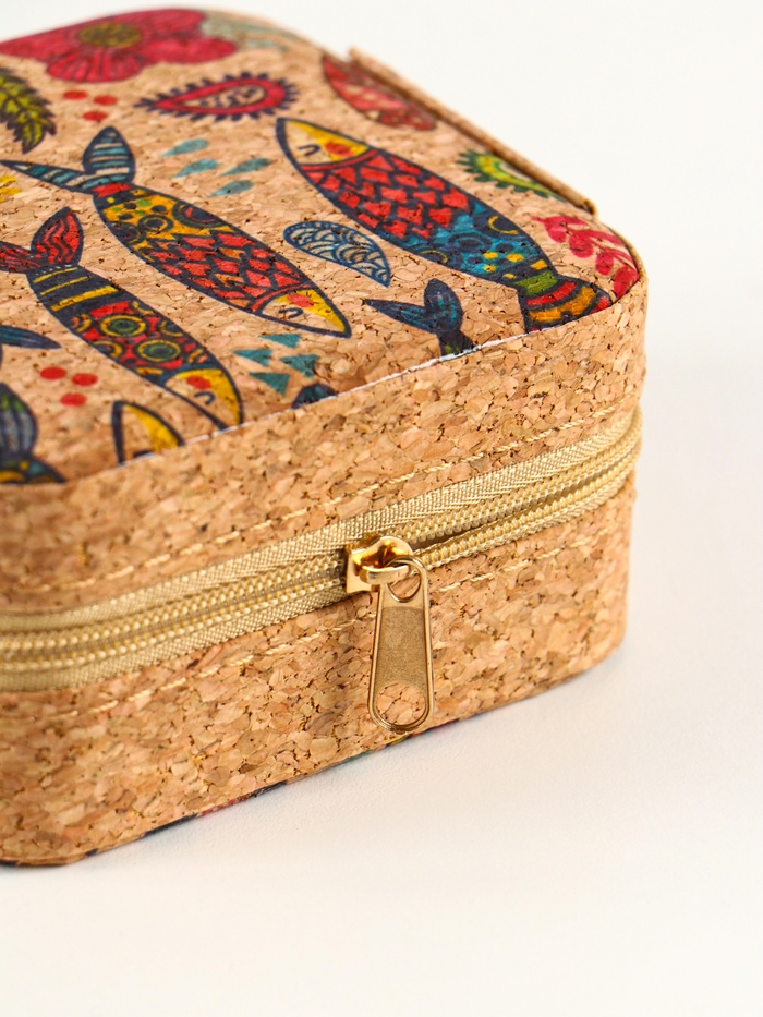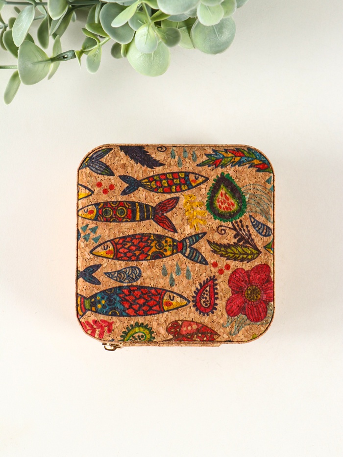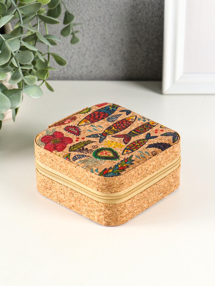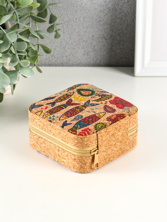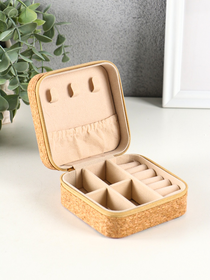 Эта квадратная шкатулка из пробки и искусственной кожи — надёжный дом для ваших драгоценностей. Её компактный размер 10×10×5 см идеально подходит для хранения на туалетном столике или в дороге. Универсальный коричневый цвет и текстурная поверхность легко впишутся в любой интерьер.