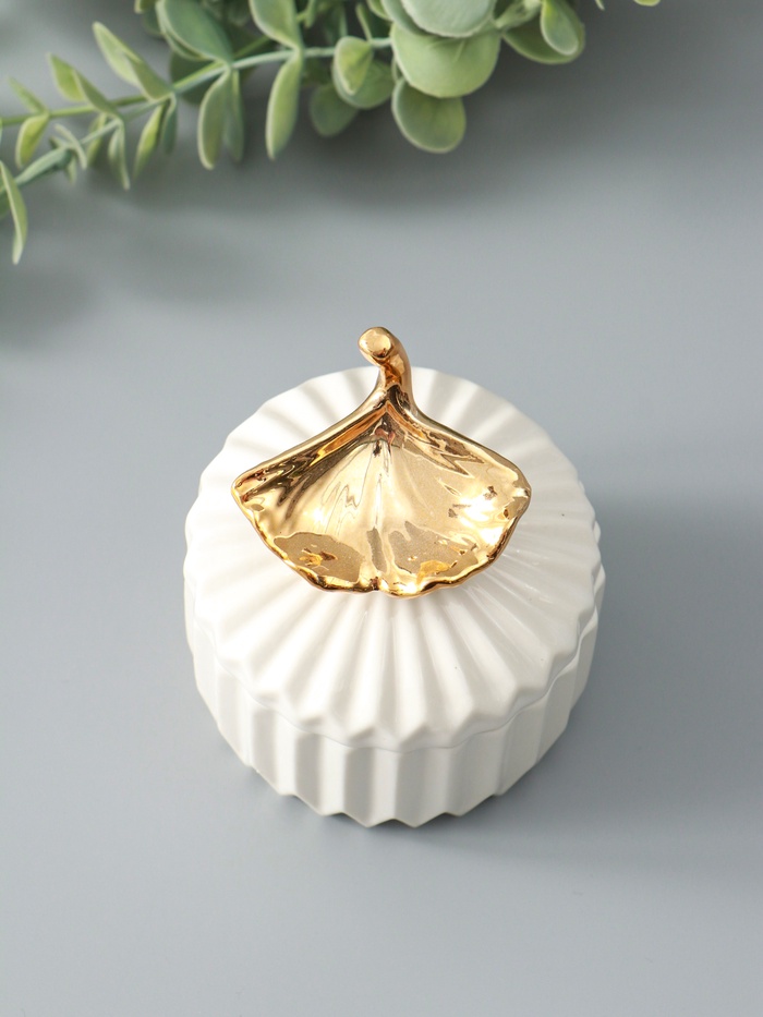 Шкатулка керамика "Золотой лист Гинкго" белая 8х8х10 см