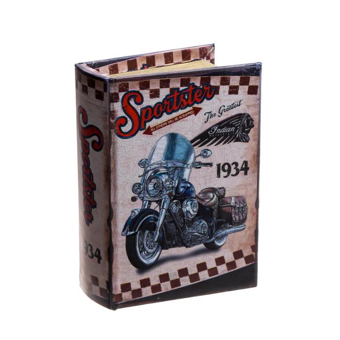 Шкатулка-книга «Быстрый мотор», дерево, кожзам, 16×11×4.5 см