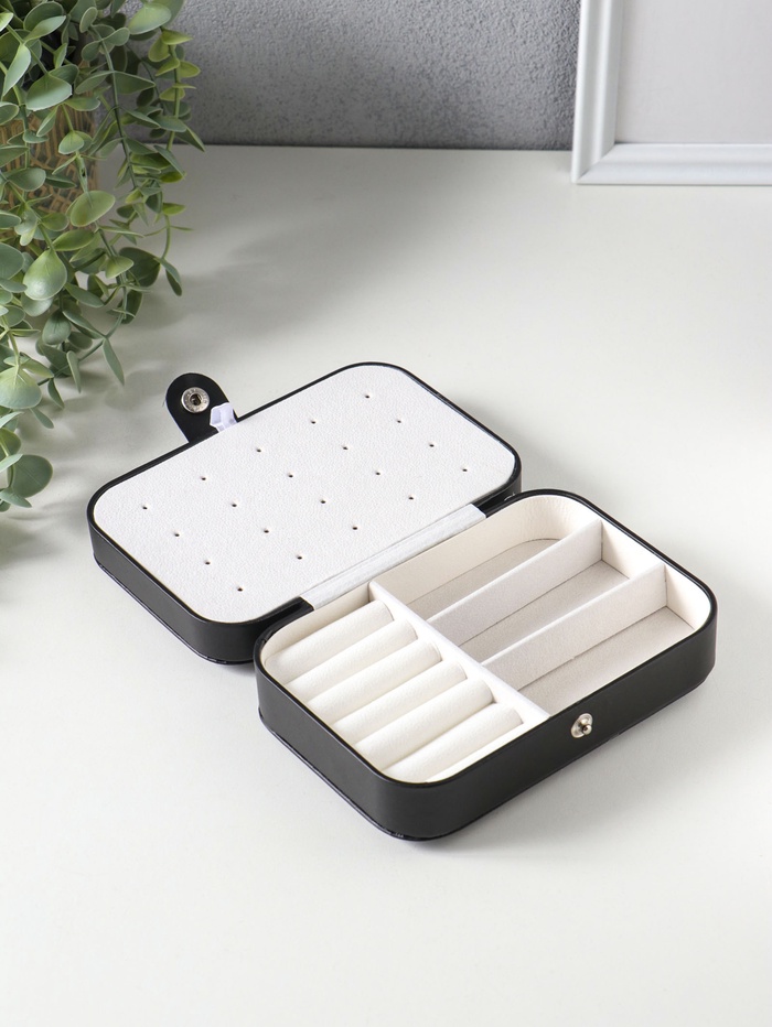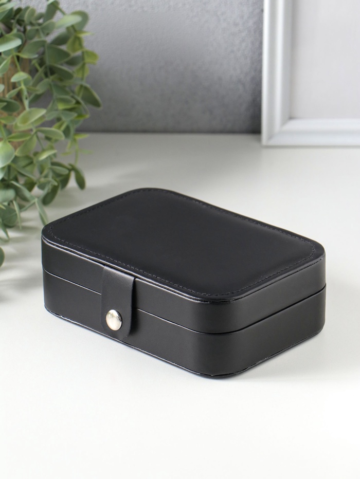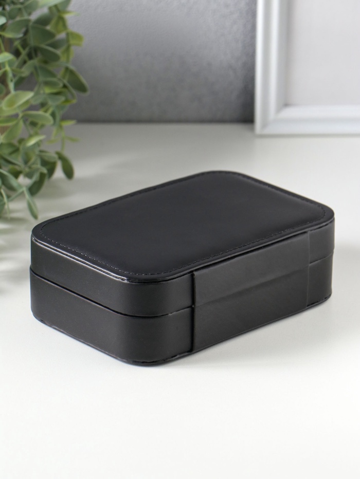 Шкатулка кожзам для украшений "Матовая гладь" чёрная 16,5х11,5х5,5 см