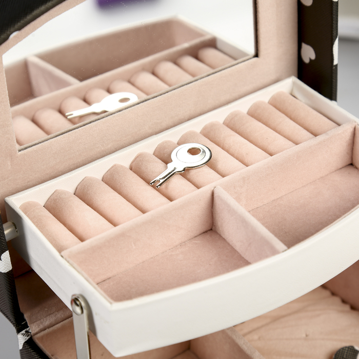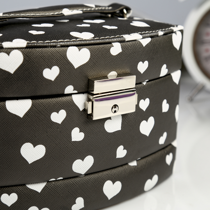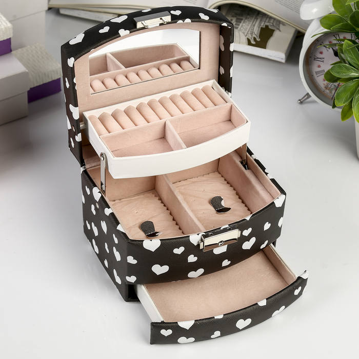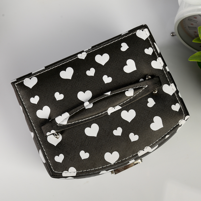 Шкатулка кожзам для украшений "Сердечки на чёрном" 11х16х13 см
