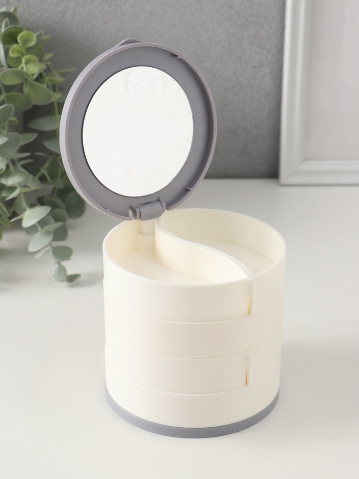Шкатулка-органайзер для хранения украшений «Круглая. 4 уровня», пластик, зеркало, белая, 10×10×10 см