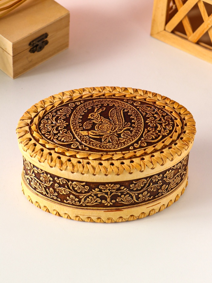 Шкатулка овальная "Маленькая Белочка", 14х9х6см, береста