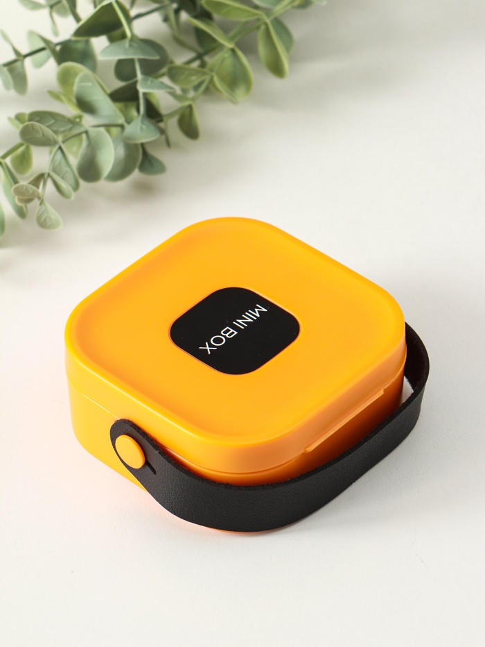 Шкатулка пластик для украшений с зеркалом, с ручкой 3 ячейки, 3 полосы, оранж 9х9х3,8 см