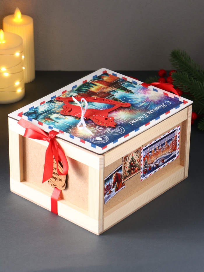 Шкатулка-посылка "С Новым Годом" с сувениром, 21х17,2х12,5 см