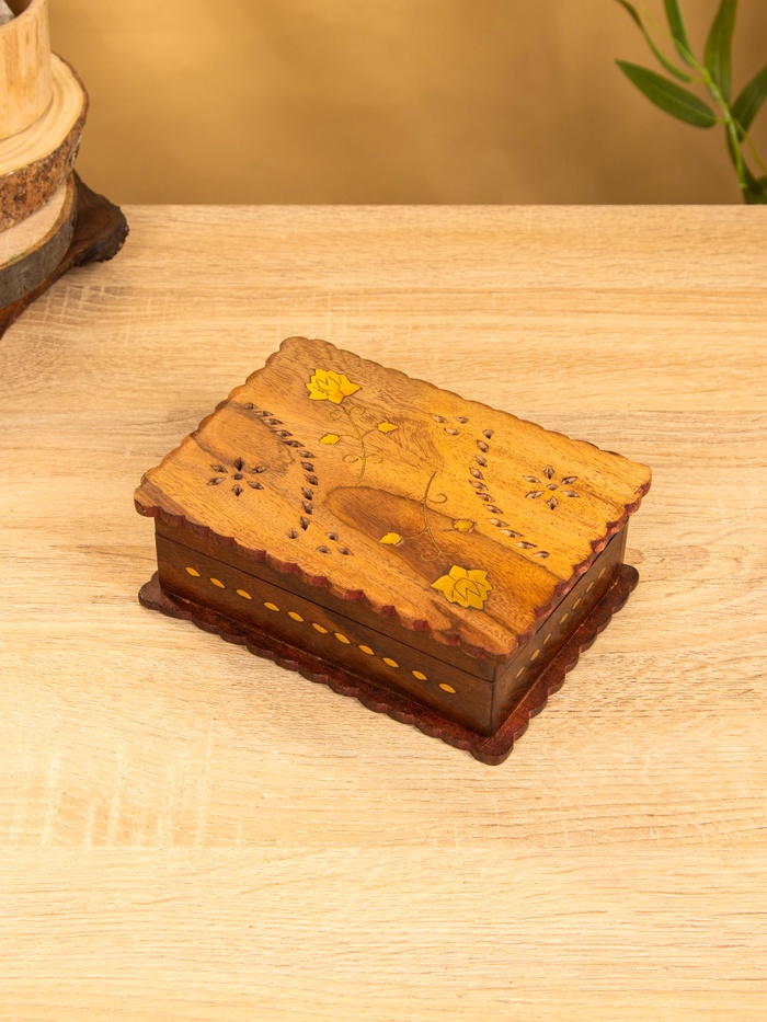 Шкатулка резная "Листья" 18х13х6 см, дерево шишам