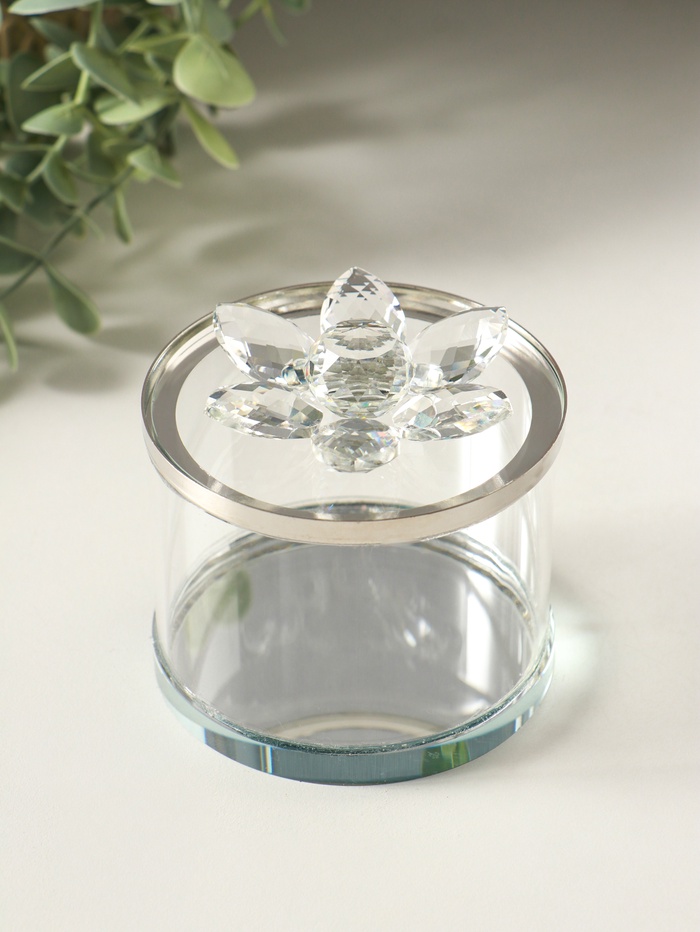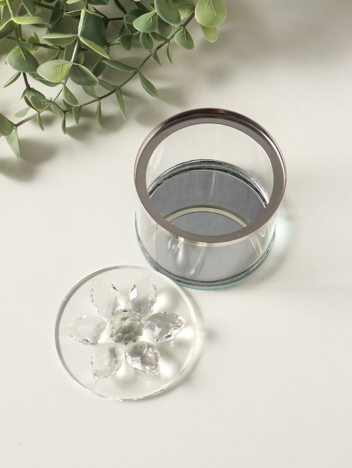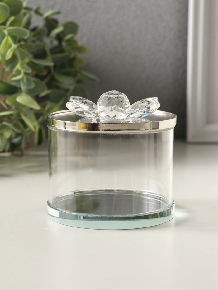 Шкатулка стекло с металлическим ободком "Лотос" серебро 8,2х8,2х8,5 см