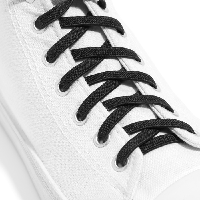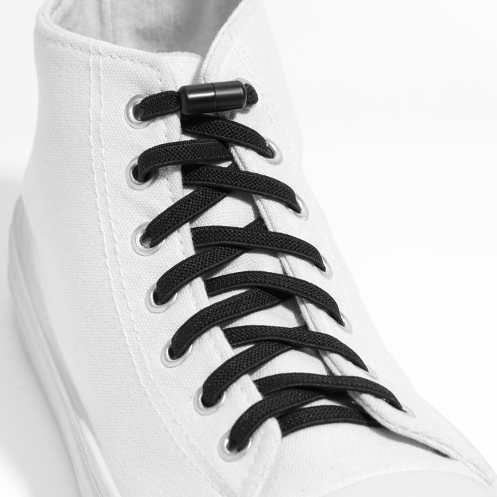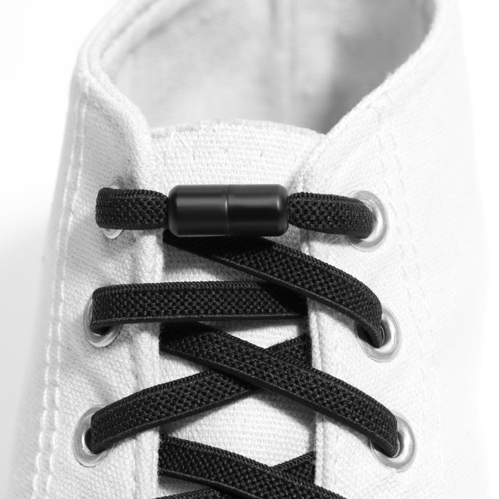 Шнурки для обуви, пара, плоские, с фиксатором, эластичные, d = 6 мм, 100 см, цвет чёрный