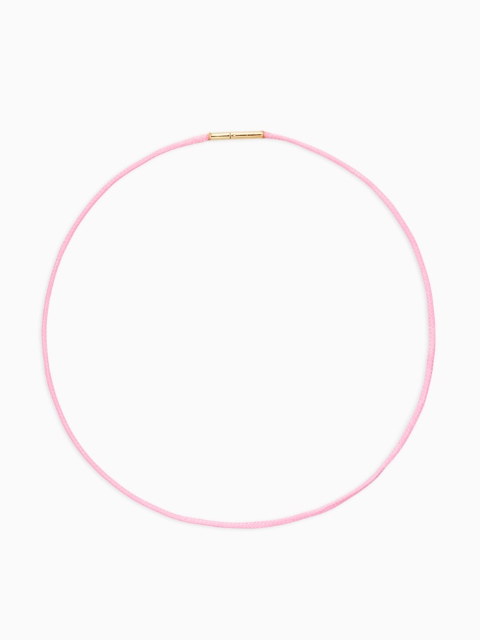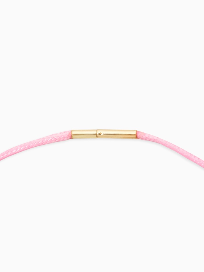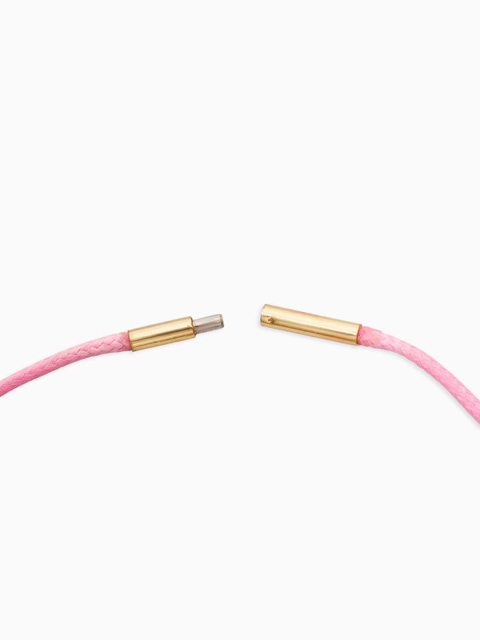 - Универсальный дизайн: сочетание розового и золотистого цвета делает шнур актуальным аксессуаром для разных случаев.