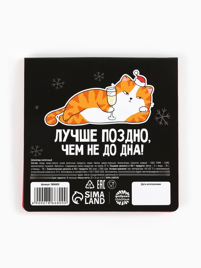 Состав: сахар, какао-масло, сухое цельное молоко, какао тёртое, эмульгатор – соевый лецитин, натуральный ароматизатор «Ваниль».