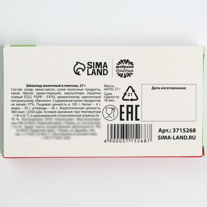 Масса нетто: 27 г.
