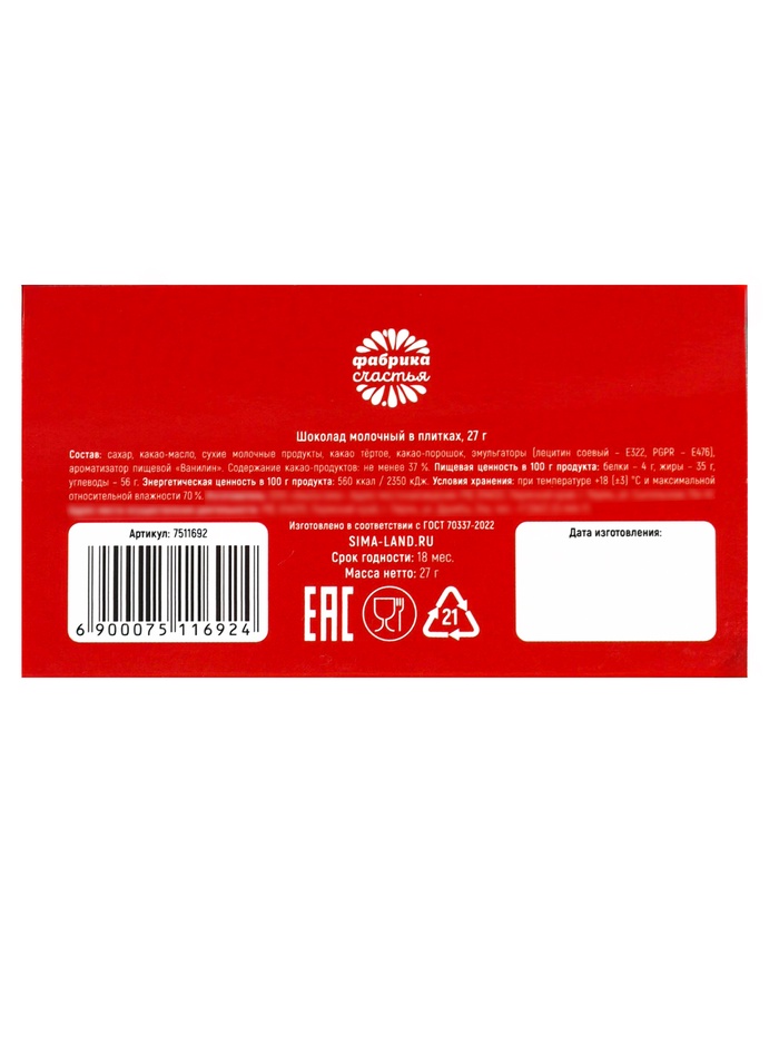 В плитках используется настоящий шоколад высокого качества от российских и производителей. Благодаря качественному составу, ваш сюрприз будет не только красивым, но и действительно вкусным!