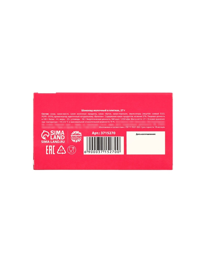 Состав: сухое цельное молоко, какое тёртое, масло какао, сухая молочная сыворотка, обезвоженный молочный жир, сахар, эмульгатор: соевый лецитин, ароматизатор, идентичный натуральному «Ванилин».