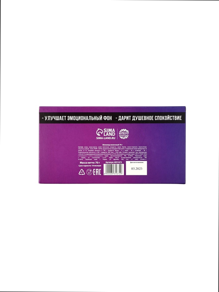 Состав: сахар, какао-масло, сухие молочные продукты, какао тертое, какао-порошок, эмульгаторы (лецитин соевый – Е322, PGPR – Е476), ароматизатор пищевой «Ванилин». Содержание какао продуктов не менее 37 %.