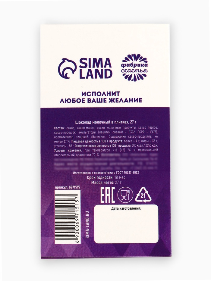 Состав: сухое цельное молоко, какао тёртое, масло какао, сухая молочная сыворотка, обезвоженный молочный жир, сахар, эмульгатор – соевый лецитин, ароматизатор, идентичный натуральному, «Ванилин».