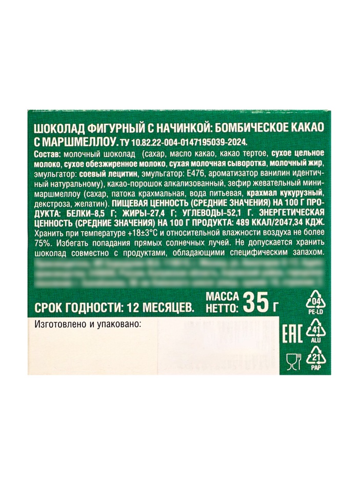 Шоколадная бомбочка с маршмеллоу «Бомбическое какао: Дед Мороз», 35 г