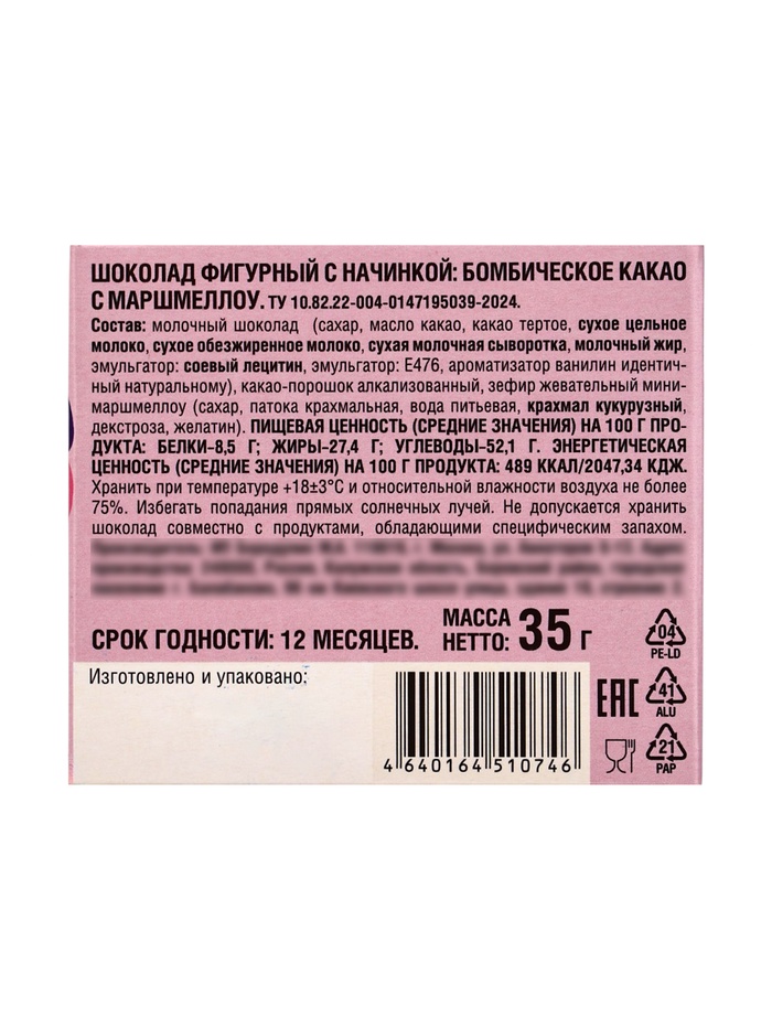 Шоколадная бомбочка с маршмеллоу «Бомбическое какао: единорог», 35 г