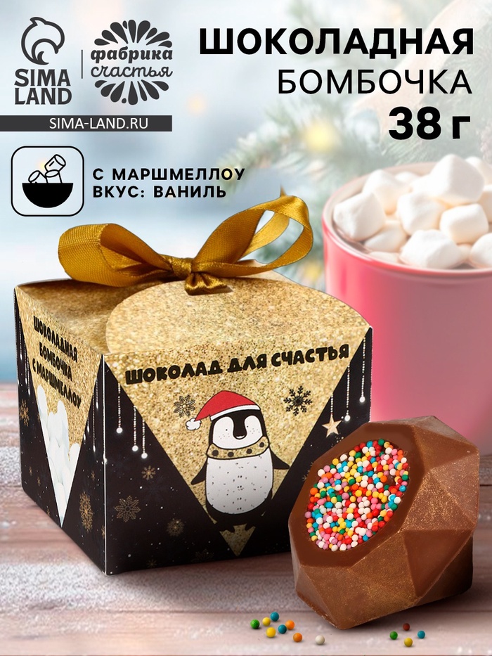 Это отличная идея презента на Новый год! Наши шоколадные бомбочки с маршмеллоу придутся по вкусу всем! Этот сладкий подарок создан согревать, радовать и дарить тепло. Нежный молочный шоколад высокого качества, ароматный какао и мини-маршмеллоу - ммм, как же это вкусно! А вашим детям непременно понравится, как шоколадная бомбочка тает, скрывается в молоке и выпускает на поверхность фонтан из мини-маршмеллоу!