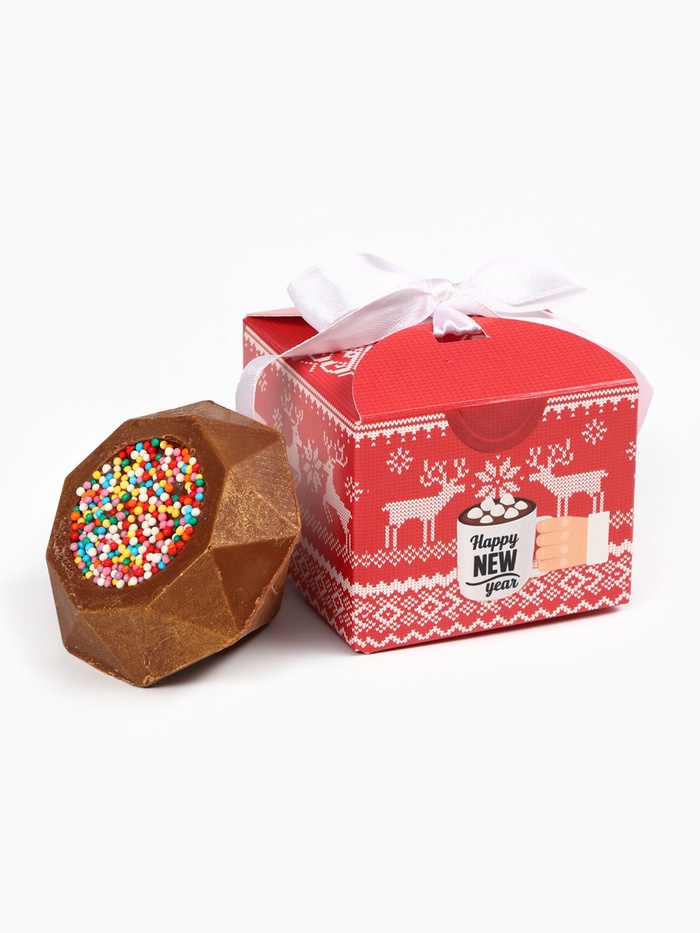 Превосходный взрывной десерт приукрасит драгоценные новогодние и рождественские моменты. Шоколад завернут в оригинальную праздничную упаковку, отлично подойдет для подарка.