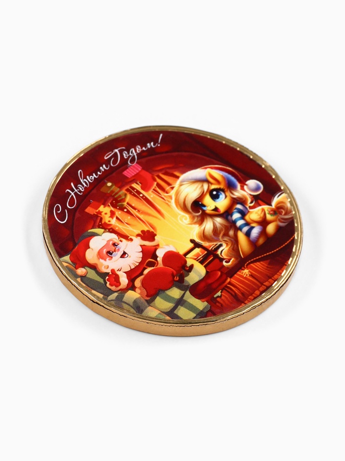 Шоколадная медаль украшена ярким дизайном, который сразу же притягивает взгляд и дарит ощущение праздника. Ее симпатичный внешний вид делает ее прекрасным подарком для друзей и близких, а также отличным элементом для праздничного стола или новогодних угощений.