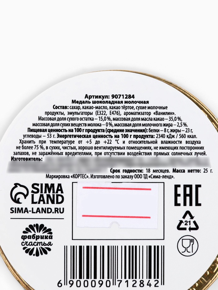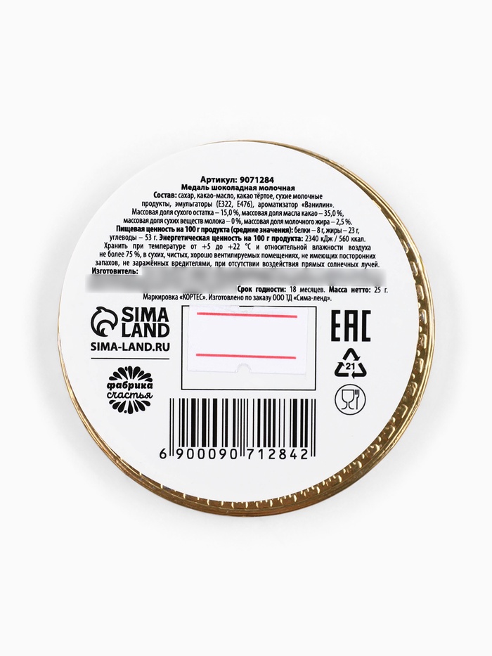 Весом всего 25 г, эта шоколадная медаль удобна для того, чтобы взять с собой в гости или подарить в качестве внимания. Она порадует сладкоежек и добавит немного волшебства в праздничную атмосферу.