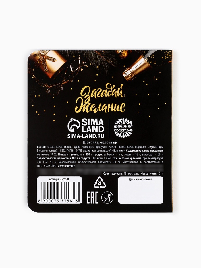 Шоколадная открытка – необычный и оригинальный способ поздравить с Новым годом! В ассортименте представлены интересные, забавные пожелания на любой вкус. Внутри каждой открытки вы найдёте маленькую шоколадку из настоящего шоколада высокого качества от российских и бельгийских производителей. Благодаря качественному составу, ваш сюрприз будет не только красивым, но и действительно вкусным!