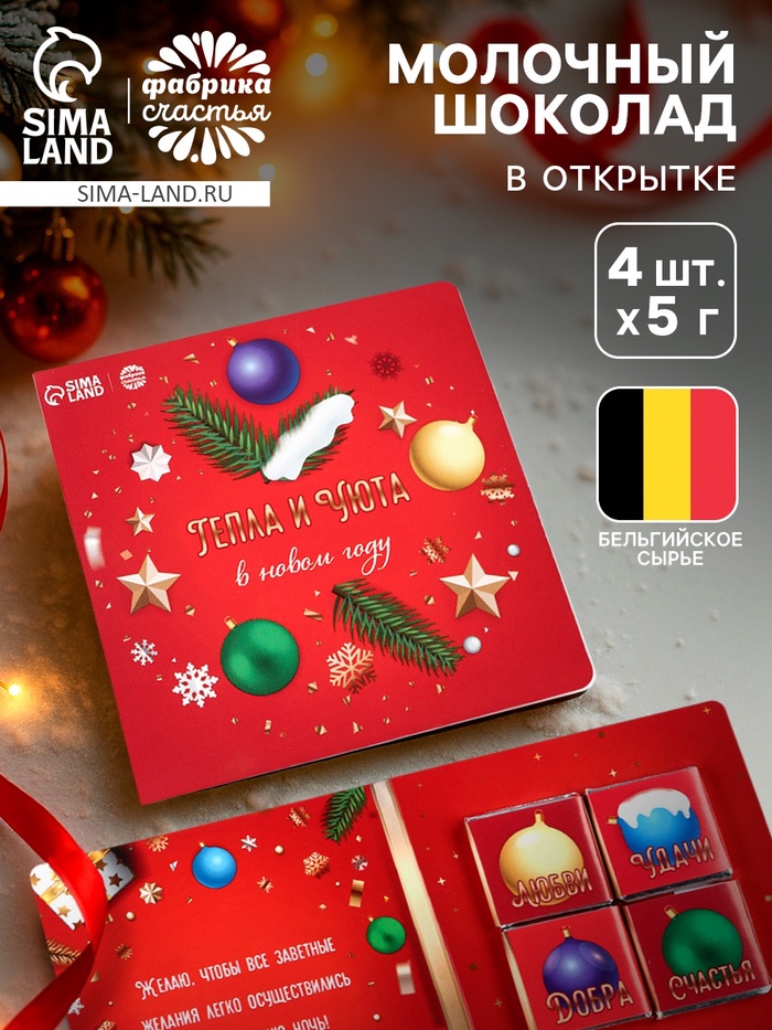 Шоколадная открытка – необычный и оригинальный способ поздравить с Новым годом! В ассортименте представлены интересные, забавные пожелания на любой вкус. Внутри каждой открытки вы найдёте маленькую шоколадку из настоящего шоколада высокого качества от российских и бельгийских производителей. Благодаря качественному составу, ваш сюрприз будет не только красивым, но и действительно вкусным!