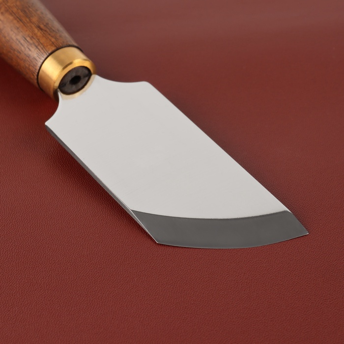Шорный нож со скошенным лезвием — это незаменимый инструмент для мастеров, работающих с кожей. Его уникальная форма и конструкция позволяют легко и точно выполнять различные операции, такие как шерфование (уменьшение толщины, утоньшение кожи в конкретных местах), раскрой кожи и формирование краёв.