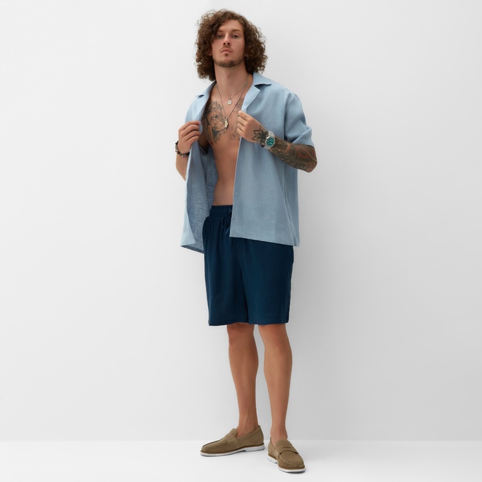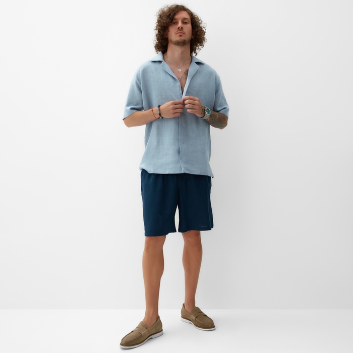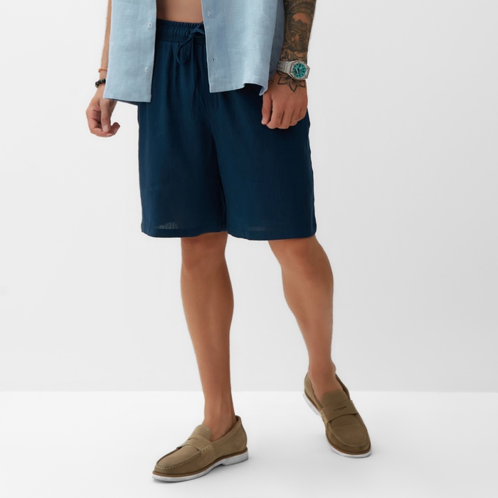 Вы наслаждаетесь отдыхом на побережье, ощущая свежий морской бриз и легкость в каждом движении. Эти мужские шорты в насыщенном тёмно-синем цвете, размера 52, созданы для отпускного комфорта и стильных образов.