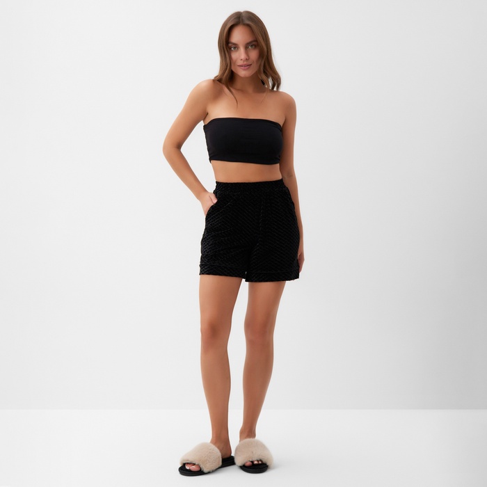 Женские шорты KAFTAN из бархата – стильное и удобное решение для повседневного гардероба. Модель прямого кроя с высокой посадкой обеспечивает комфортную посадку и свободу движений. Эластичный пояс на резинке надежно фиксирует шорты, не сдавливая талию. Материал – бархат на основе полиэстера с добавлением эластана, приятный на ощупь, прочный и устойчивый к износу. Подходят для создания casual-образов, домашнего отдыха и прогулок. Лаконичный черный цвет сочетается с любыми топами, футболками и свитшотами. Вшитые карманы добавляют практичности. Уход: стирка при 40 °С, глажка с изнаночной стороны, не отбеливать.