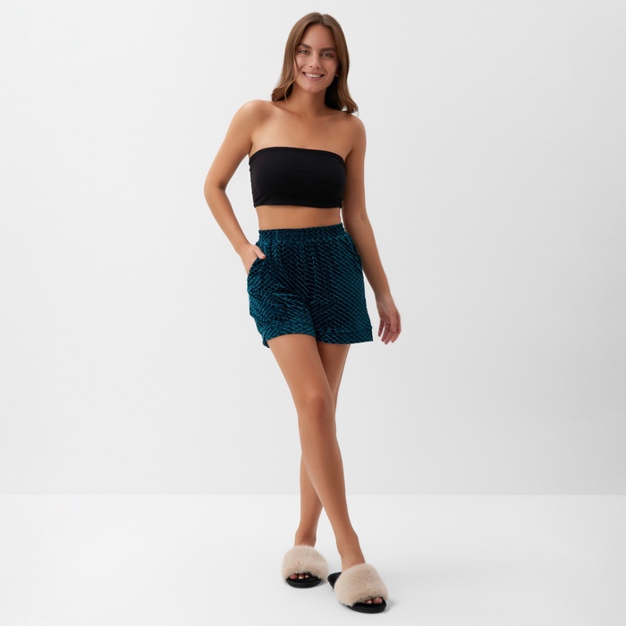 Женские бархатные шорты для комфортного отдыха и повседневной носки. Прямой крой обеспечивает свободу движений, а высокая посадка подчеркивает силуэт. Выполнены из мягкого и приятного на ощупь бархата с добавлением эластана и полиэстера – материал не теряет форму и устойчив к выцветанию. Вшитая резинка на поясе обеспечивает надежную посадку без сдавливания. В боковых швах – удобные карманы. Глубокий зеленый цвет гармонично сочетается с разными элементами гардероба.