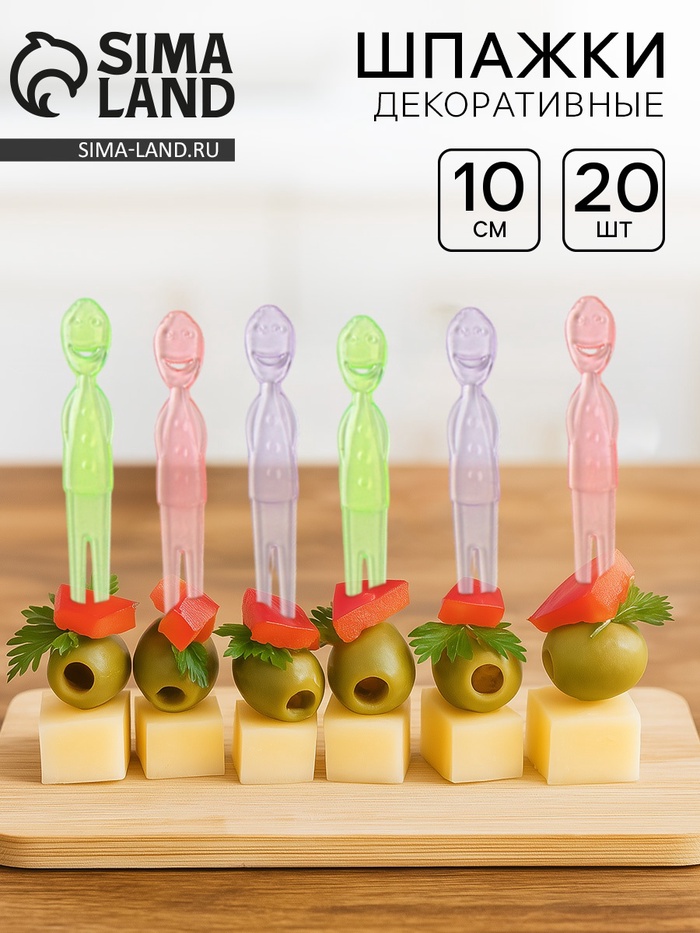 Шпажки «Человечки» — это оригинальный набор для подачи закусок и канапе на детских праздниках и вечеринках. В наборе 20 шпажек с забавными фигурками человечков, которые добавляют веселья и яркости в оформление праздничного стола. Такие шпажки идеально подходят для подачи фруктов, канапе и других закусок, делая их более привлекательными для детей.